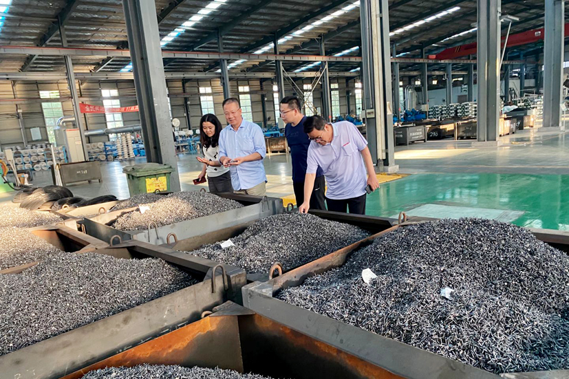 劉思敏博士在馬總及公司工作人員陪同下考察車間生產(chǎn)現(xiàn)場