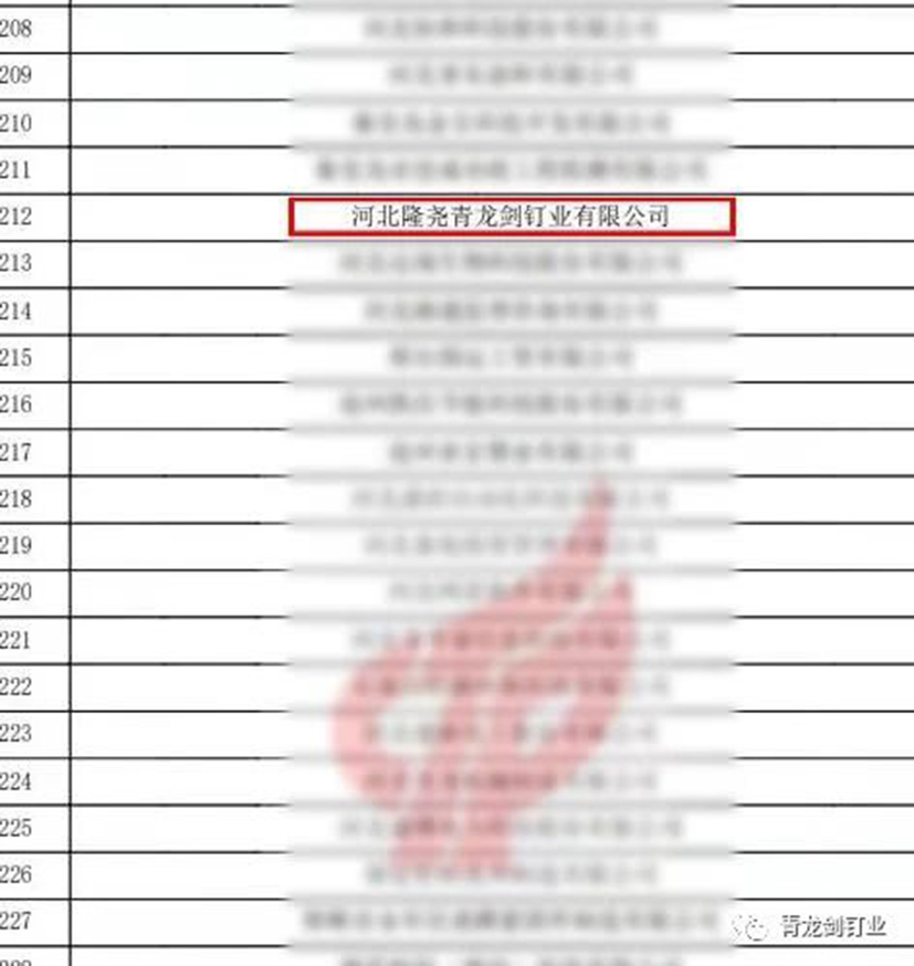 青龍劍釘業被認定為國家級高新技術企業