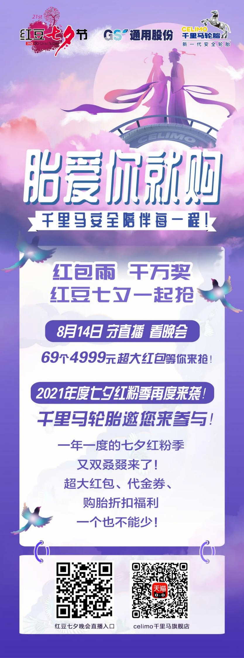 紅包產生路徑:“celimo千里馬”天貓官方旗艦店將抽取一名幸運消費者,另外還將有68個4999元紅包名額將通過紅豆七夕晚會(2021年8月14日20點至22點)在直播平臺現場瓜分。